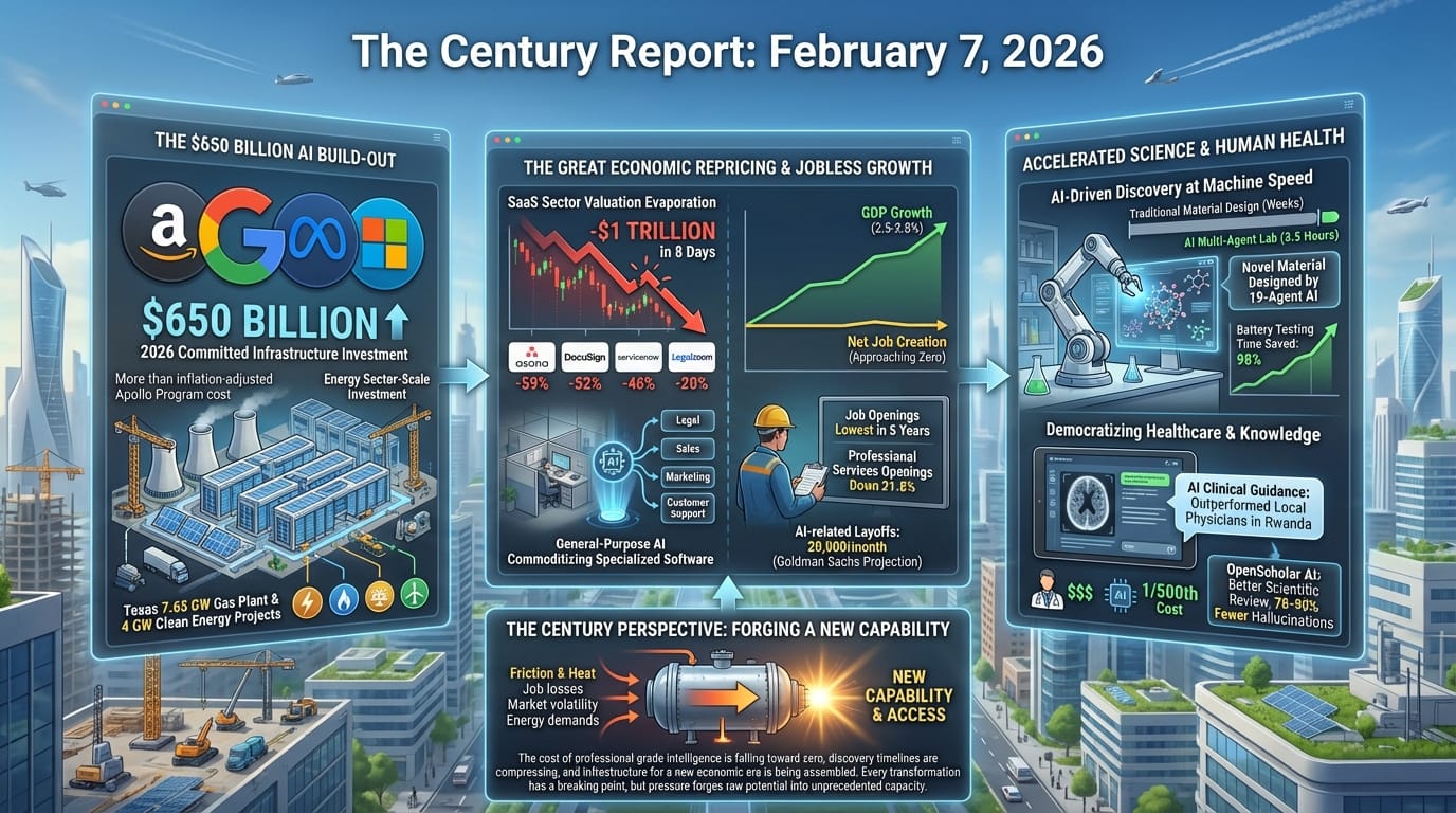 $650B AI infrastructure commitment, SaaS collapse, open-source AI outperforming proprietary, jobless growth accelerates. What’s actually breaking - and what’s being built.