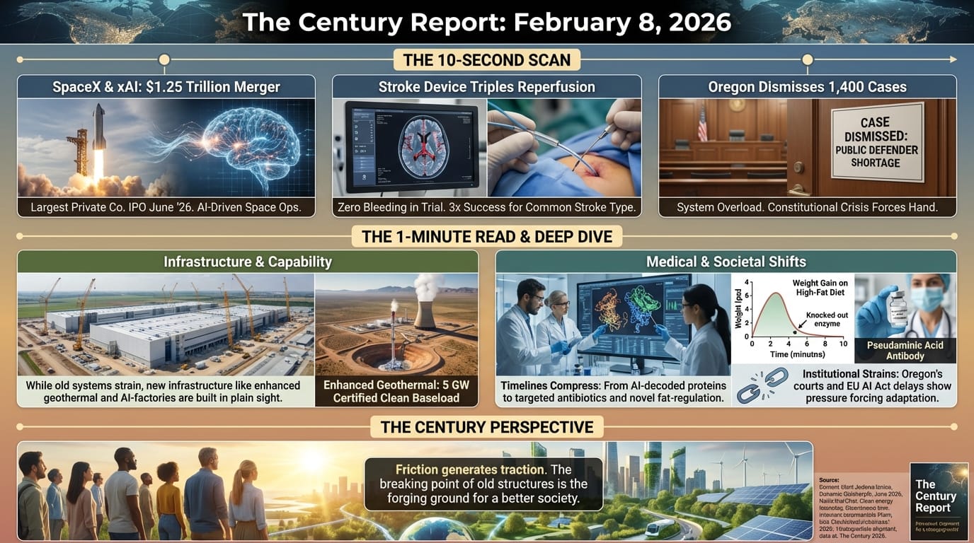 Geothermal energy infusion, 3x stroke treatment gains, and 1,400 cases dismissed. The infrastructure for what’s next is assembling - while old systems show their limits.